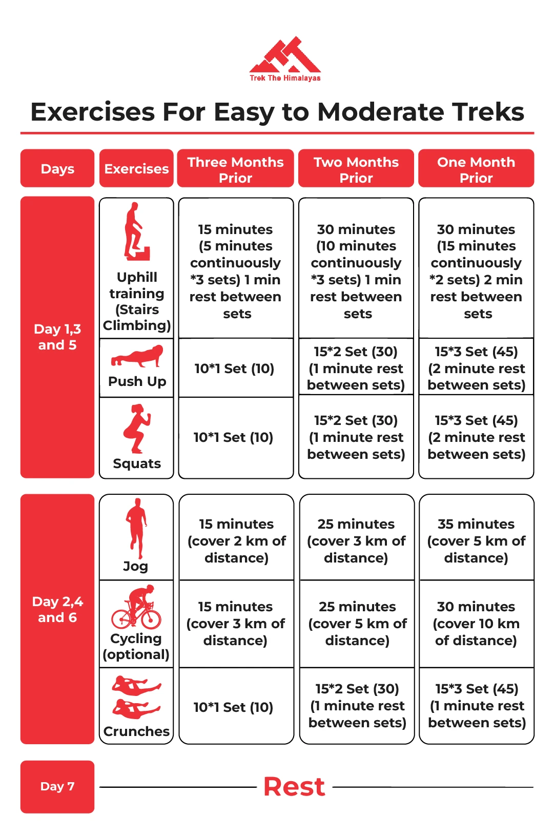 To prepare for the Har Ki Doon Trek, focus on building your physical fitness through: